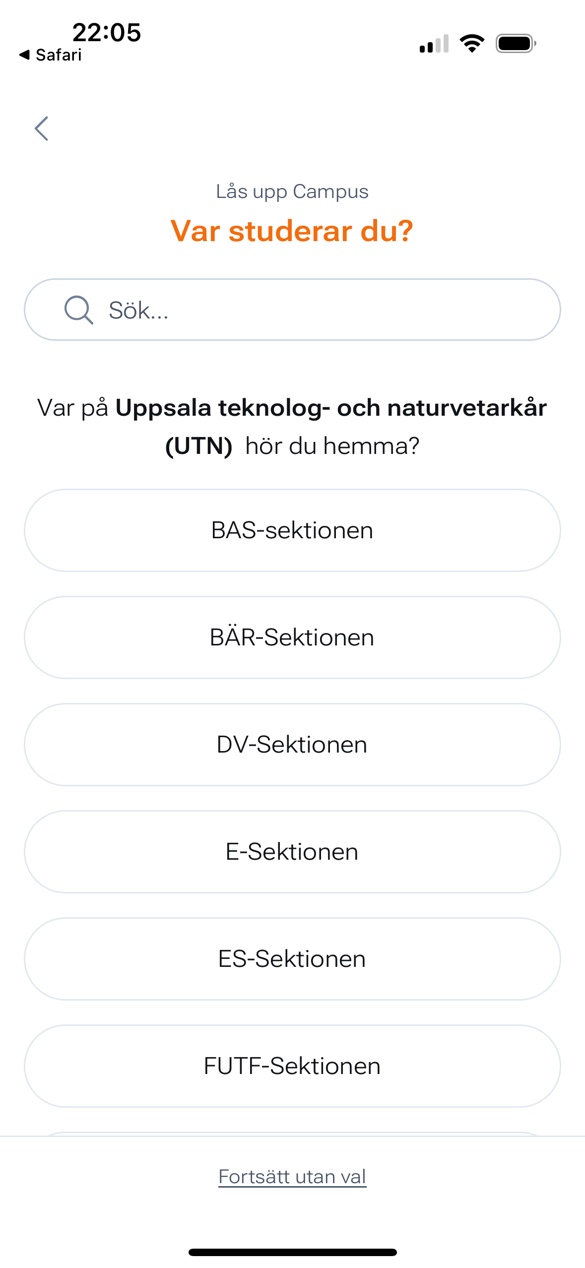 Därefter letar du reda på din sektion. Sektionen är kopplad till det program du har valt att plugga