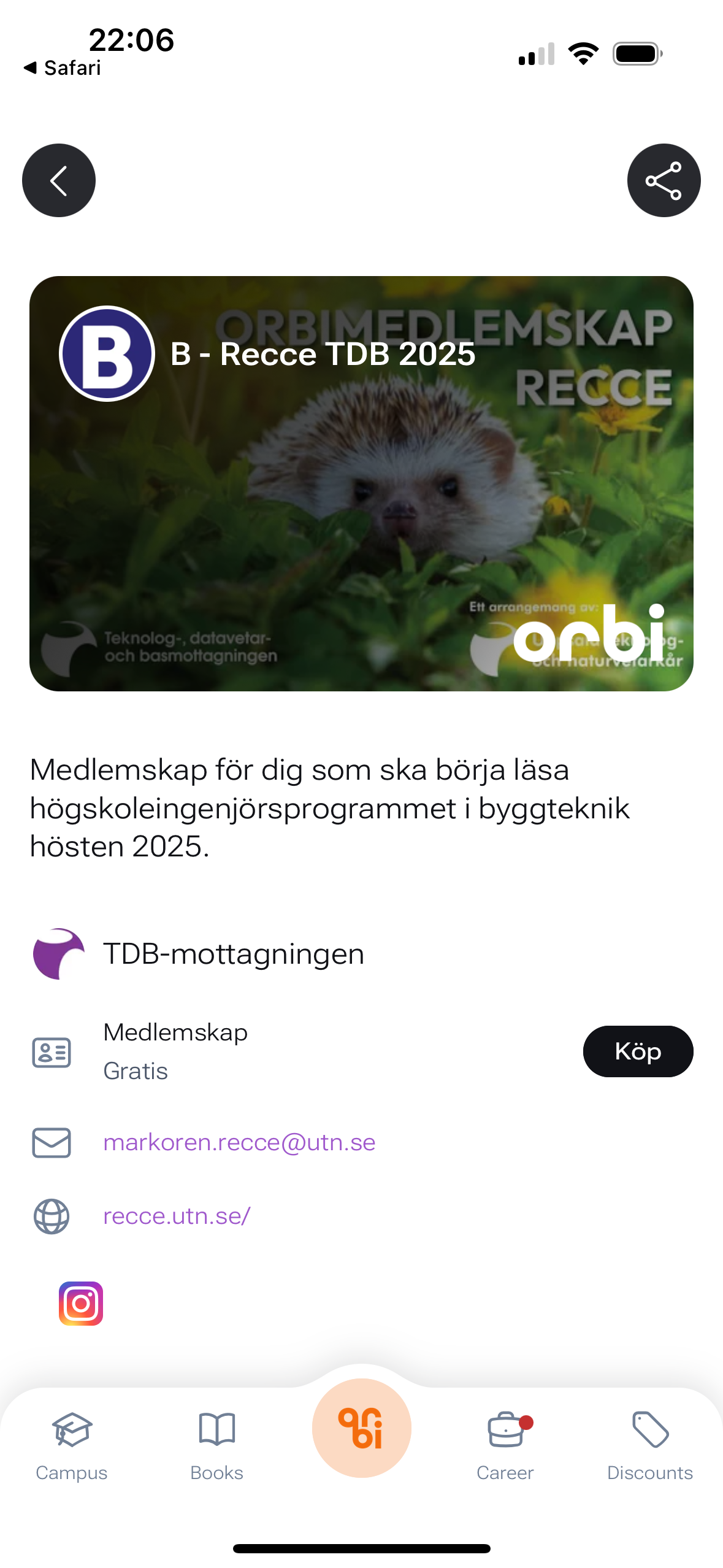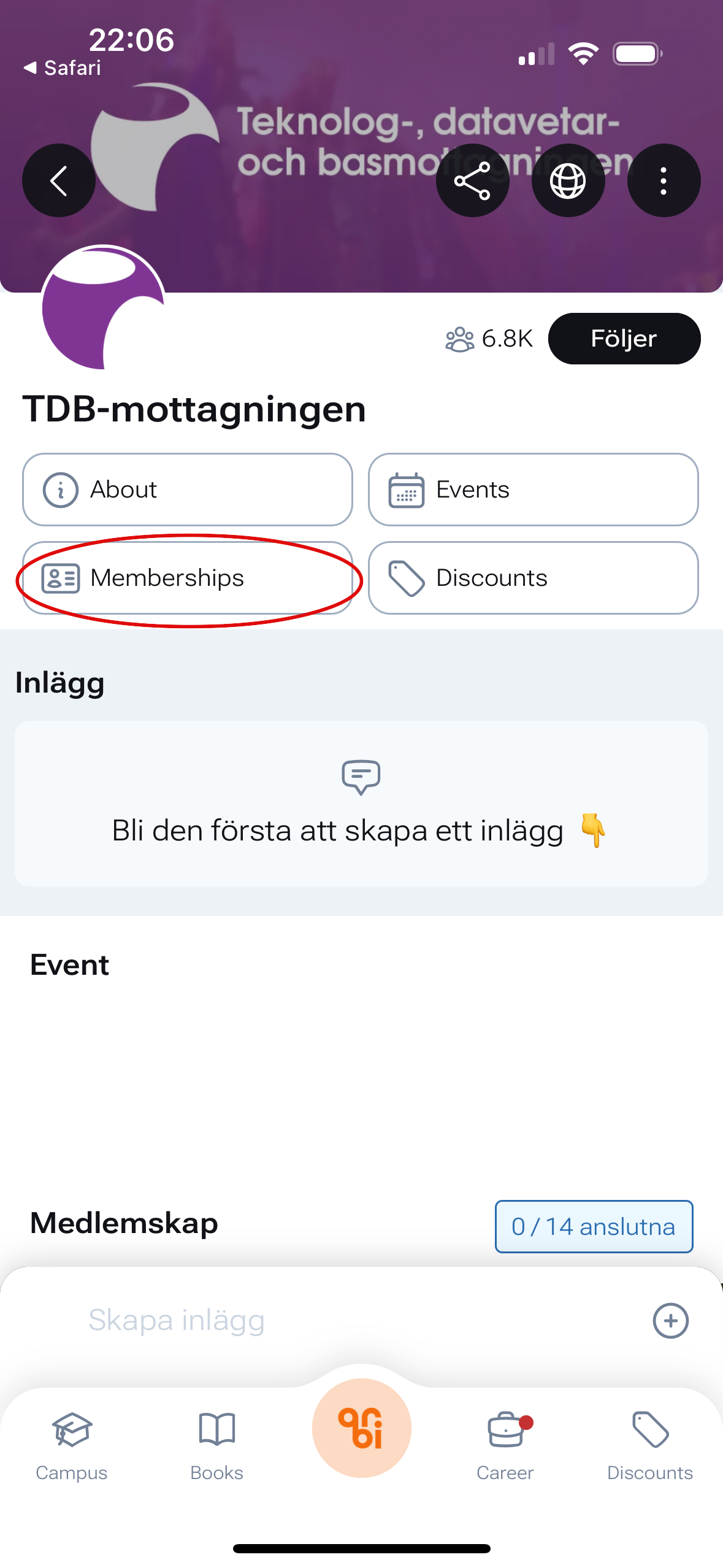 Se till att skapa ett konto på orbi och ansök om medlemskap redan innan mottagningen så att du kan ta del av alla event som kommer att vara under mottagningen!
